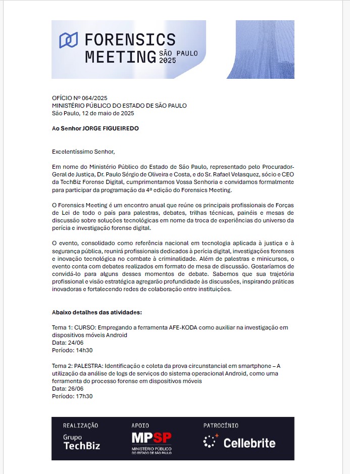 - Garantia de autenticidade das provas por meio de hash SHA-256, assegurando que os dados coletados não sofram alterações após a extração.